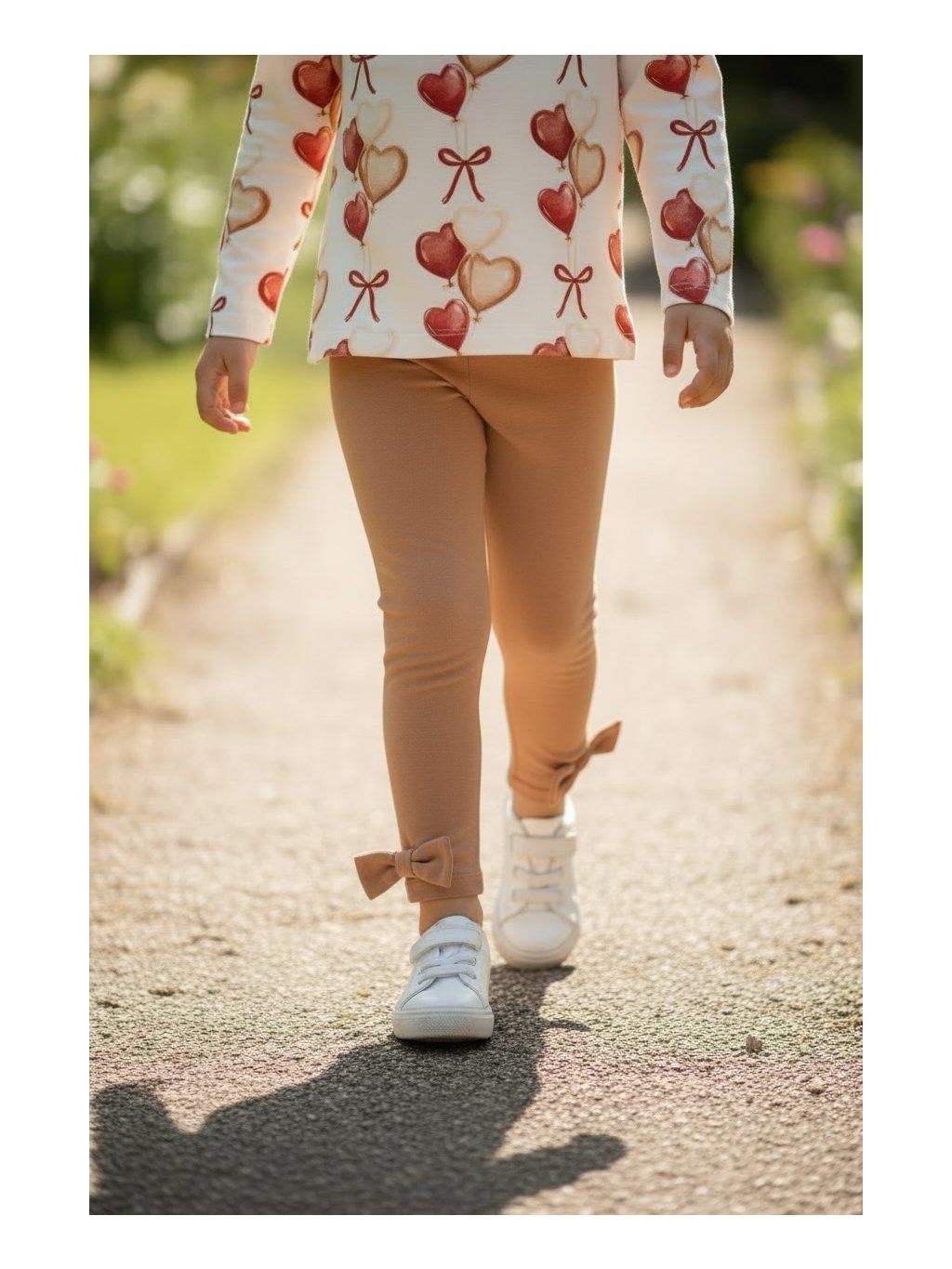 Legínky jsou světle hnědé a krásně ladí k halence SRDCE.