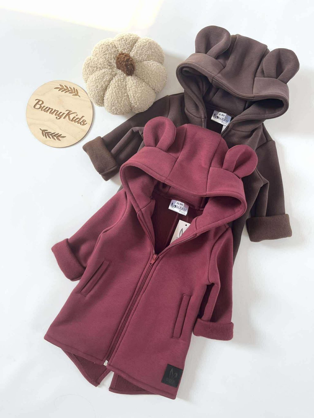 Mikino kabátek s oušky VÍNOVÝ - Bunny kids