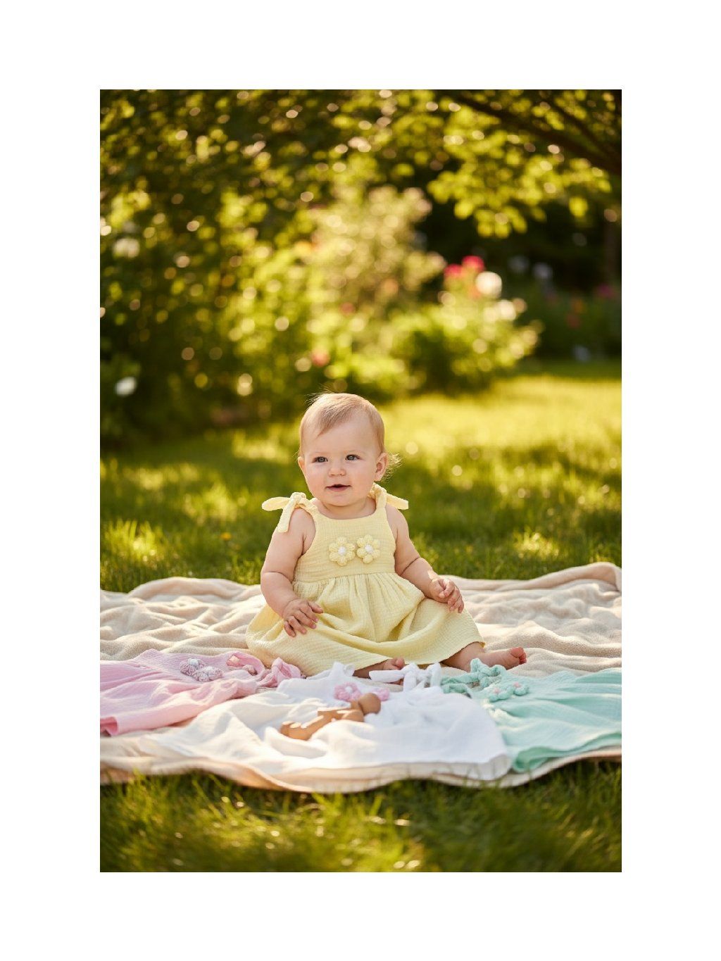 Mušelínové šatičky s kytičkou ve více barevných variantách.